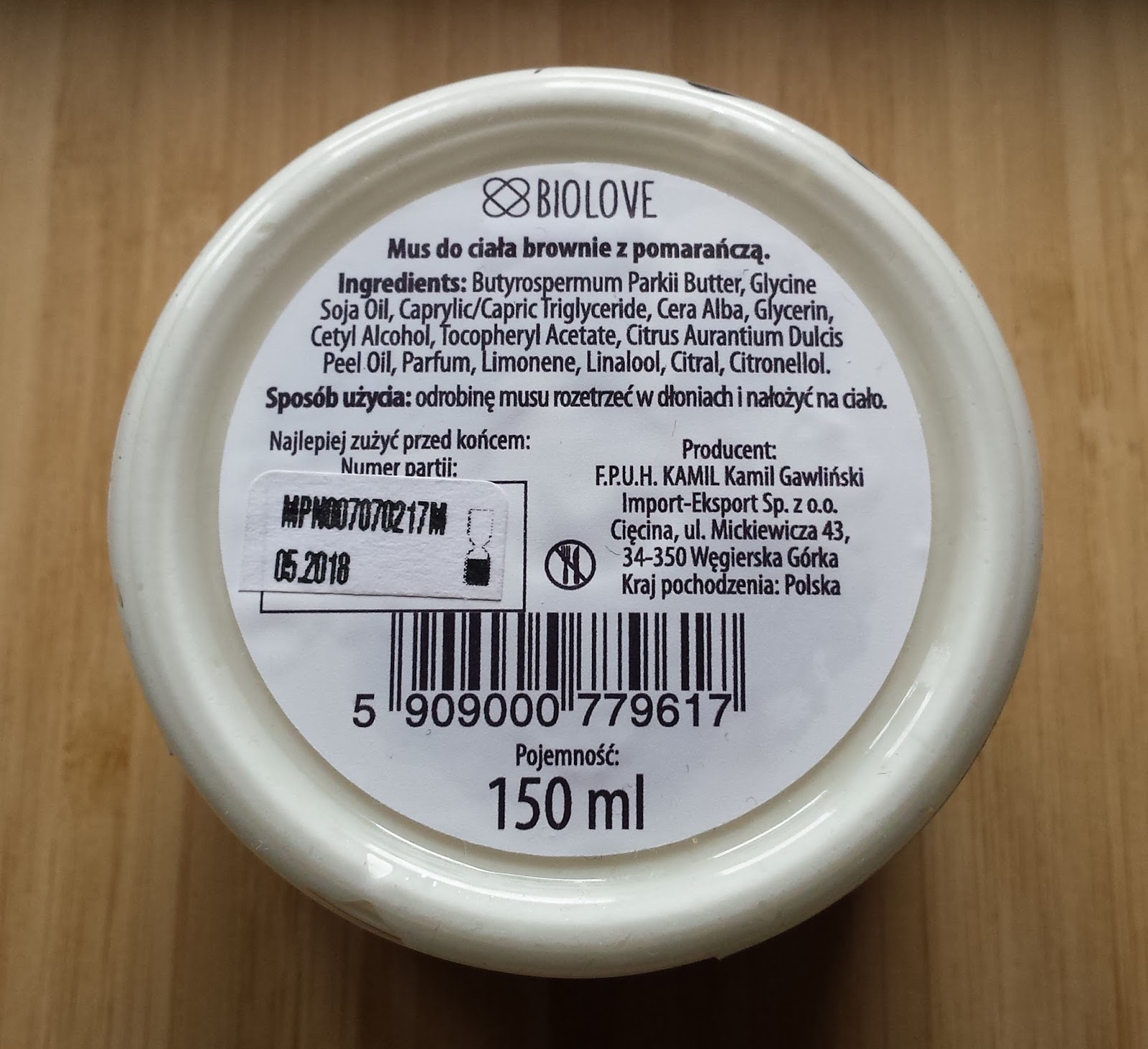 Polskie kosmetyki BioLove - mus do ciała brownie z pomarańczą