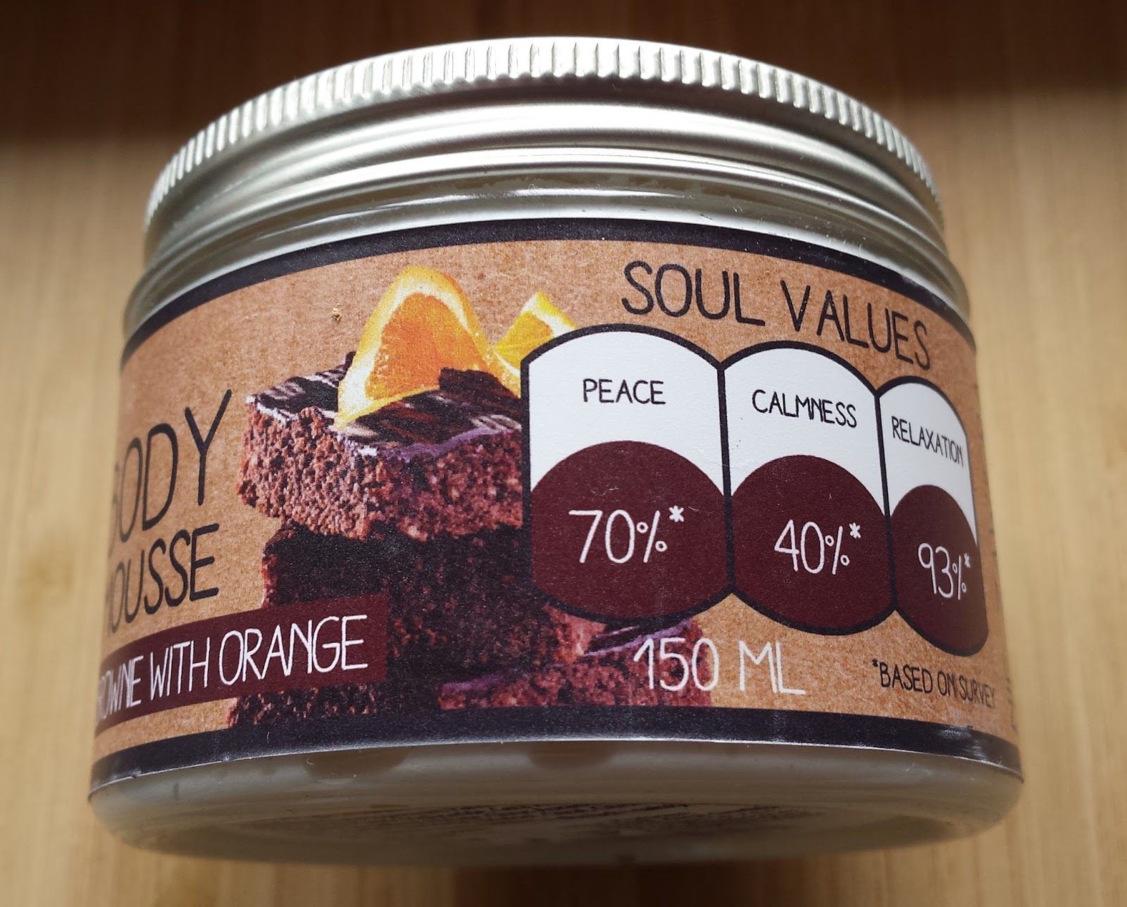 Según una encuesta llevada a cabo por la marca BioLove, la mousse de cuerpo brownie con naranja posee propiedades aromaterapéuticas: ayuda a calmar y relajar el organismo. A mí me sube mucho el estado de ánimo después de un día duro :)