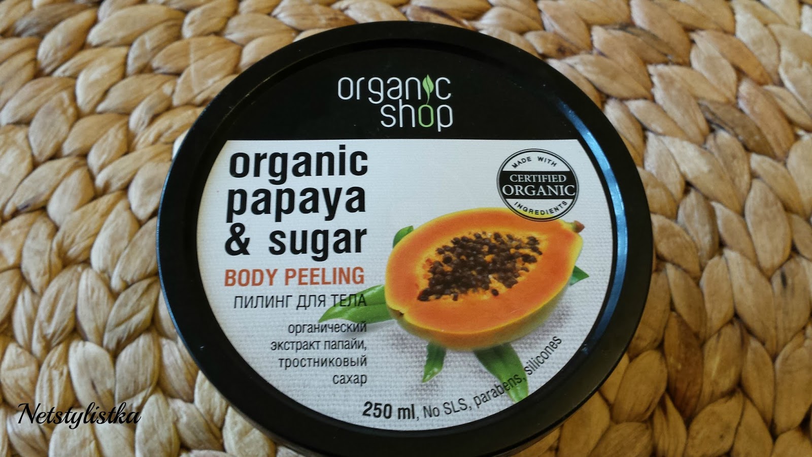 1. Organic Shop - Organiczny peeling do ciała z papają oraz cukrem trzcinowym (Organic papaya & sugar Body peeling)